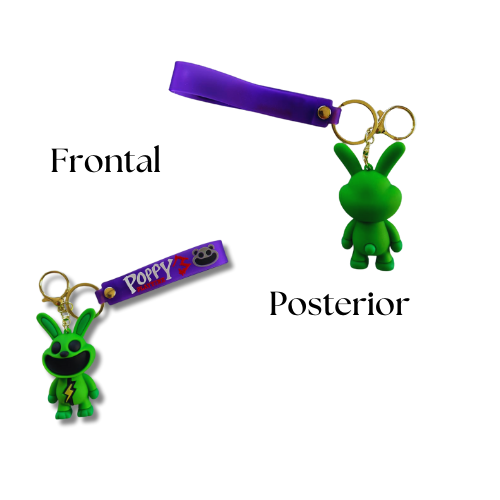 - Diseño: Representación del personaje «Conejito Poppy» con un moldeado 3D que realza sus detalles característicos, creando un efecto visual dinámico y atractivo con sus colores en verde y amarillo.
